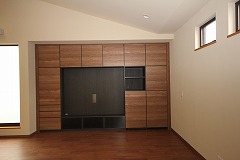 和室の押入だったところに多用途なシステム収納棚を設置しました。 |